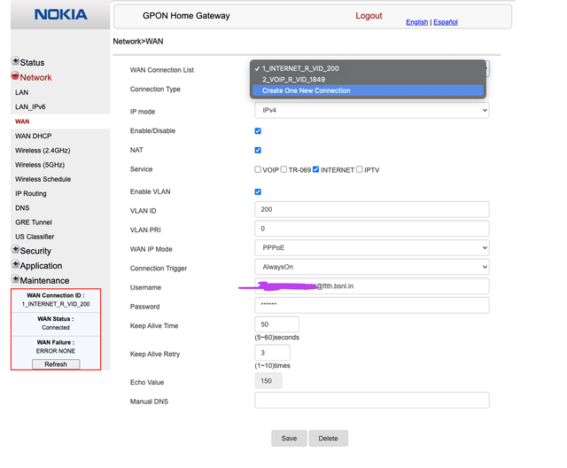 but please check i am not able to delete wan connection profiles or add any new profile! please help!