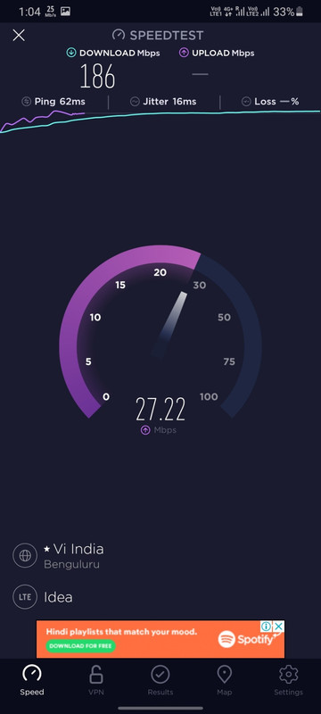 Speeds on idea at peak times within the heart of city. with 3ca .b1 10mhz + b3 20mhz + b8 10 mhz. B8 is dss enabled. The strategy of deploying dss on b8 is still a mystery to me ,I think they are deploying it on lesser denser population areas within the city.