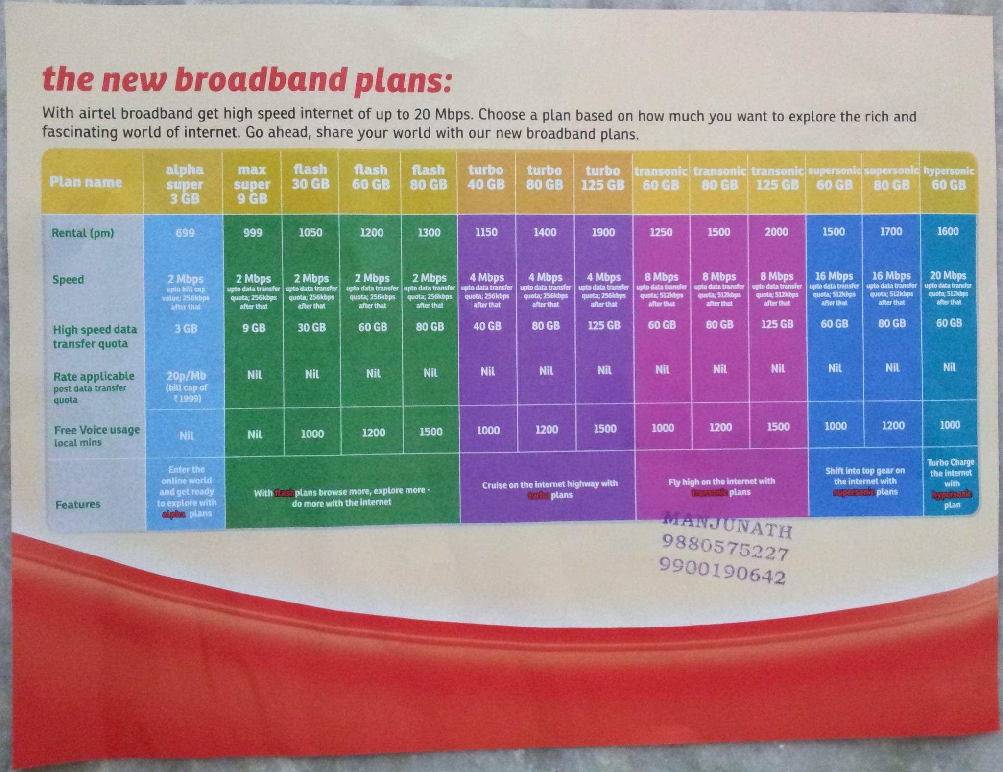 Airtel's new plans in Bangalore - advertised in newspaper inserts: